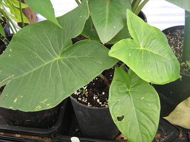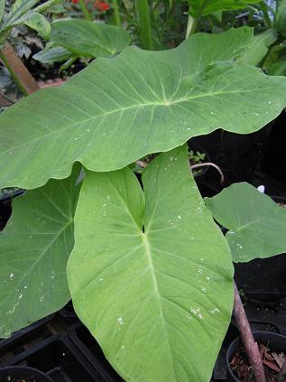 will at least make a good plant for the greenhouse. Successful, but not enough to flower (at least for me). Adventurous Plants say: "Sauromatum giganteum is fully hardy, but very late to start into growth in the UK – late July or even August. For best results it is wise to attempt to start the tubers into growth with some additional warmth, before moving the plants to frost free conditions as Autumn approaches. This helps give the plant enough growing time to nourish the tuber." Plant Delights Nursery say: "Sauromatum giganteum is a little-known Chinese (Tibet to Manchuria) hardy aroid that is a must for collectors of the weird and wonderful. In mid-July (NC), the long, nearly white petioles emerge from the tuber to produce 1' long, green, arrowhead-shaped leaves. Also, alongside the emerging leaves is a bizarre 10" tall flower spike emerges on a short stalk at ground level. Each inflorescence is an upright, purple pitcher with a velvety black lining. From the interior of the pitcher emerges the dark black spadix. The giant voodoo lily does have a memorable fragrance for about a day...how else would an insect be lured to have sex in there? For over a decade we grew these in light shade where they performed well, but when we planted a patch in full sun, they exploded into growth like never before." |