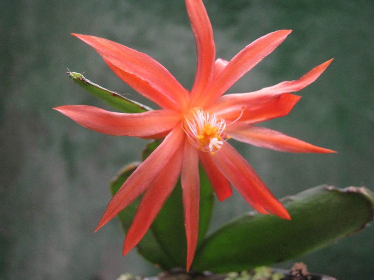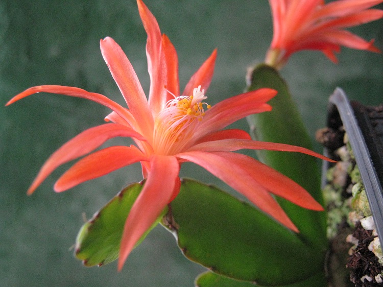 One of a series of cuttings without names given to me by a friend as a Schlumbergera though it produced the flower of a Rhipsalidopsis. What a strange world!