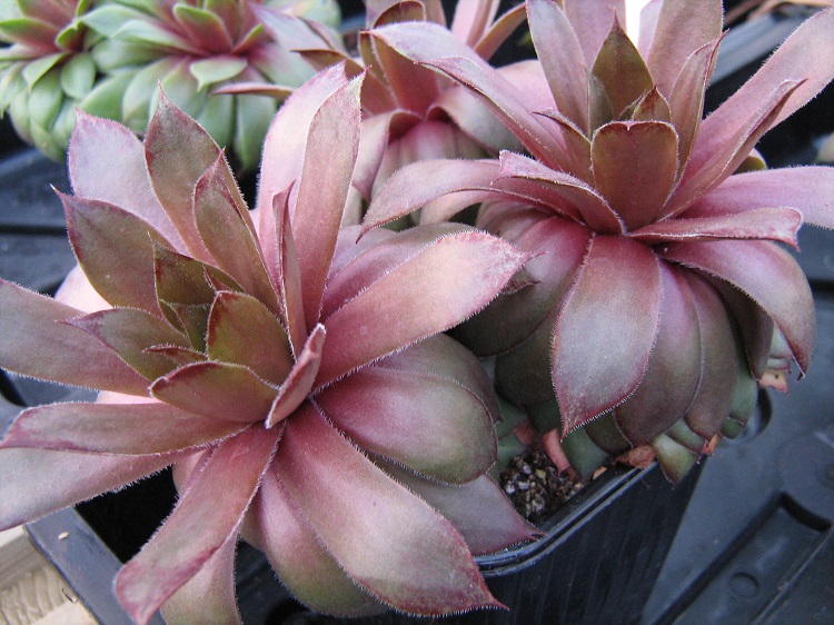 Raised by David Ford in the UK in 1984. I got it in a trade with a collector in the Czech Republic. Craigiehall Nursery say: "Colours range from dark olive/brown in spring with darker leaf tips, through reddish brown to almost honey tones in summer. Medium sized rosettes." |