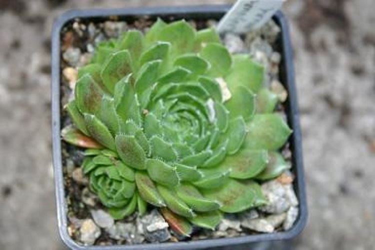 and registered in 1985. Writing on Sempervivum List, Erwin Geiger says: "Many years ago, I was amazed to observe an almost black spring colouring on this variety for the first time. Absolutely needs full sun and nutrient-poor substrate, greened during the summer." And Volkmar Schara says: "An older breed that stands out especially in spring due to its very dark, almost black coloration. In summer, the small rosettes slowly turn green and show a great play of colours. Super!" Craigiehall Nursery say: "An excellent Houseleek, colourful (is black a colour?) and easily grown. The rosettes are fairly small but they soon make dense, compact clumps. The leaves are dark green for much of year becoming black with fresh growth then reverting to green through summer. A perfect colour to complement all those reds and paler forms in a group. Needs full exposure and perfect drainage like all Houseleeks, but given those, we find it very tolerant of winter wet. 'Black Mini' was one of the first named Semps we ever bought (in the late 1980's) and every year it pleases us." |