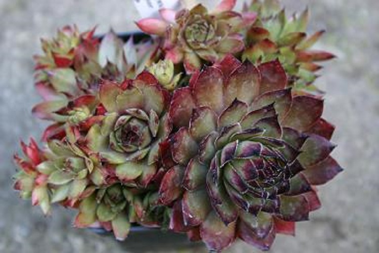 I assume this is an old cultivar but I haven't yet located its origin. I bought it from Blackthorn Nursery. Their label says: "Pink flowers, sun and poor soil, good drainage." Mountain Crest Gardens say: " A charming rosette succulent that thrives outdoors. This variety tends to show olive green and lilac tones with deep burgundy leaf tips. It produces lots of offsets and can develop into an impressive cluster." |