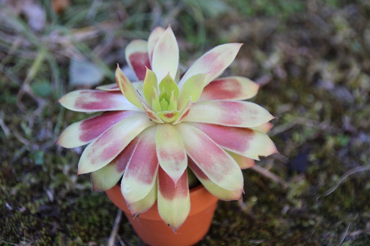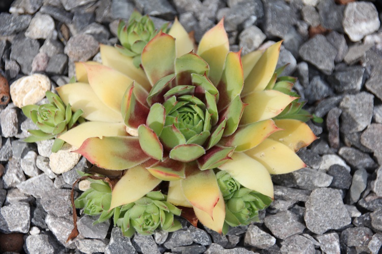 The Plant Patent says: "The inventor discovered the new cultivar in January of 2014 as a naturally occurring branchlet mutation of Sempervivum 'Ruby Heart' (not patented) that was growing in a 1-quart pot at his nursery in Hudsonville, Mich. (It) exhibits unique foliage coloration throughout the growing season; spring coloration is golden green with dark red markings (picotee), summer coloration is lime green without red margins, fall coloration is golden yellow with dark red leaf margins, winter coloration is red." It is a striking plants and has rapidly gained commercial popularity. Thompson and Morgan say: "It's easy to see the appeal of this colourful little succulent! Sempervivum Chick Charms 'Gold Nugget' transforms from lime green in summer to flame orange as winter advances. The fleshy leaves give this evergreen perennial astonishing drought tolerance - perfect for growing in dry conditions! Plant them in small groups and let them knit together through rockeries and narrow borders, or pot them into alpine troughs and terracotta bowls. Wherever you grow this hardy House Leek, it will provide year round colour and interest." |