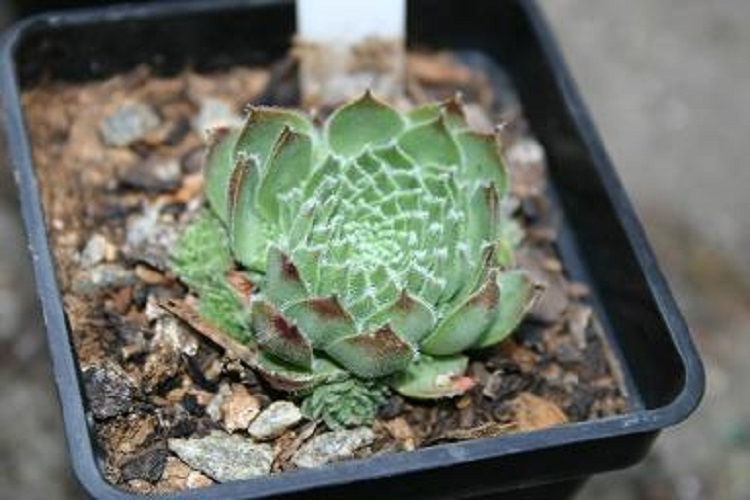 It had a sea-green colour when I got it but it rapidly developed red shades in the sunshine. Formed a tight mound of rosettes and