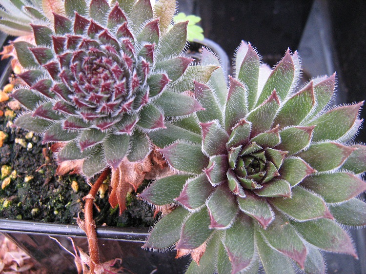 She's'Spinning Around' you know! Rosettes form small cushions with may narrow, slightly hairy leaves. I got is as part of an exchange with a grower in the Czech Republic. A seedling of S. pittonii raised by Andre Smits in Belgium in 1999 but named by Martin Miklanek in Slovakia and introduced in 2004. Craigiehall Nursery say: "Small to medium rosettes in a fresh green with dark brown leaf tips and a slight overall fuzziness. I'm going to make a sweeping generalisation - men tend to like Kylie Minogue (the singer/performer), women tend to dislike her. And further, I think the plant doen't really match the showgirl image of Kylie, but I'm full of my own opinions!" |
