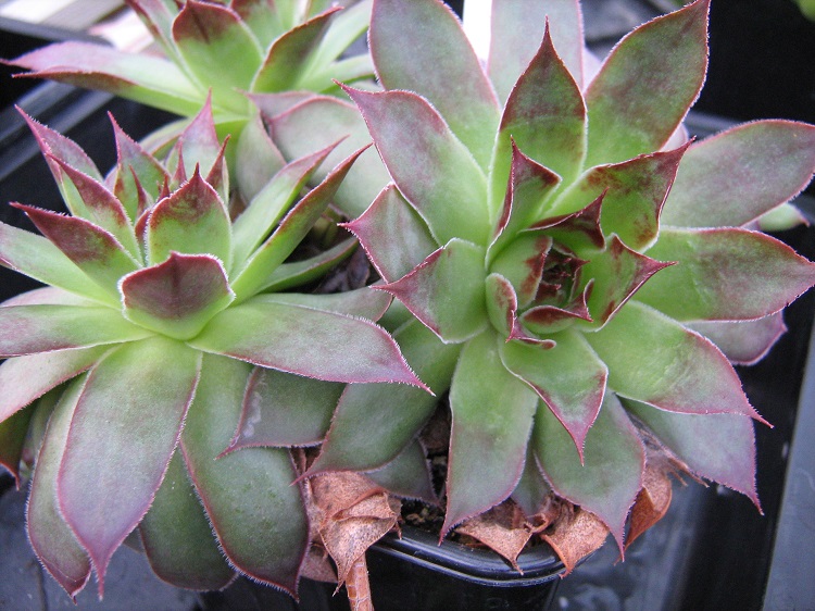 A rather ordinary looking cultivar until it went outside into the sunshine when it developed burning autumn colours. Raised by Martin Harberer in Germany and released in 1995. His description says: "Ros. 4 cm, wide, teal, brown-pink tips" |