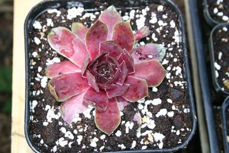 though I have no idea where I planted it or what happened. I bought this one in 2005 from Quintrell Downs Garden Centre. A hybrid between S. tectorum 'Rubicundum'