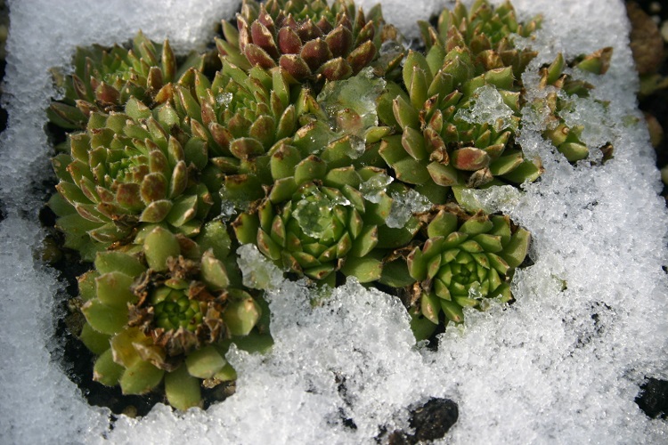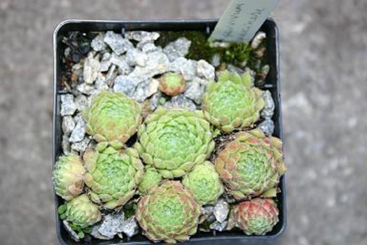 A vigorous, small growing cultivar with cobwebbed green rosettes. Raised by Helen Payne in the USA and released in 1975. Horst Diehm says: "small rosettes light or creamy green, tinged with red in spring, light tufts of hair on the tips of the leaves, wishes a somewhat nutritious soil". Erwin Geider describes it (quoted on Sempervivum List): "Braided rosettes in a striking light green color, very vigorous!" Craigiehall Nursery say: "The green varieties of Sempervivum often struggle to compete with the brighter, red-leaved varieties, but the pale green of 'Pekinese' is equally beautiful. Slightly hairy, it quickly makes attractive mounds and in summer the leaf tips of the older, central rosettes take on pinkish-red tips. 'Pekinese' will add interest and contrast to any collection of Houseleeks and it's one we increasingly like. An easy grower, it's also one we often include in the collections we make up for customers as it's unlikely to disappoint." |