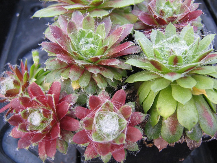 A seedling from S. arachnoideum raised by Ed Skrocki in the USA and introduced in 1972. Horst Diehm said: "bright red in spring, changing to green in summer"brbr Mountain Crest Gardens say: "A small, webbed rosette of the S. arachnoideum type. The rosettes can get pink to red blushing on their outer leaves during sunny seasons. In spring, this variety produces masses of offsets that look great spilling between rocks. |