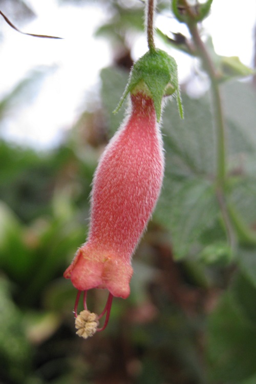 As a consequence I have rather neglected the other Sinningia species , which seems to have been a mistake. This one comes from southern Brazil and Argentina, and has grown easily in full sun, and flowered for months on end. The tuber has come into the greenhouse for the winter, which I hope will preserve it safely until the spring sprouts from its starchy bosom. I got a plant from Plant Delights nursery. Their catalogue says: "Yes, it's another of the amazing hardy gloxinias from South America. Sinningia sellovii is composed of thick, light green, sandpaper-like leaves on an arching clump that can reach 54" in height. Atop the plant from May through October are 4.5' arching spikes, each bearing over 100 pendent scarlet-orange bells...a hummingbird dream. Although the base of Sinningia selovii is only 2' wide after 10 years, the arching stems spread to 6' wide, so allow plenty of room. We grow our plants of Sinningia sellovii in a full sun-baked rock garden, where they thrive with good drainage...very easy." Plants of the World online says: "The native range of this species is Bolivia to Brazil and NE. Argentina. It is a tuberous lithophyte and grows primarily in the wet tropical biome." In an article for Walter Magazine, Tony Avent wrote: "Sinningia sellovii, on the other hand, remained in a tight clump and flowered nonstop from May until October. Later research revealed that Sinningia sellovii was native primarily to the hot deserts of Argentina, which explained why – despite its tender appearance and more sensitive relatives – it thrived in our hot summer climate. I subsequently also tried both of my new sinningias in part sun and light shade, and while they still produced a scant handful of flowers, they were simply not the same glorious plants they were in baking sun." Bihrmann's Caudiciforms says: "This member of the Gesneriaceae family was given this name by Hans Joachim Wiehler in 1978. It is found in north-eastern Argentina, Bolivia, Brazil, Paraguay and Uruguay, growing in a rich but well drained soil with some water and some sun. The caudex can grow to 25 or even 40 centimetres in diameter, the stems erect up to 90 centimetres, and the flowers are orange-red or even yellow. The genera is named after Wilhelm Sinning,1792–1874, a gardener of the Botanische Gärten der Friedrich-Wilhelms-Universität Bonn. The species is named after Friedrich Sellow, 1789–1831, a German botanist." |