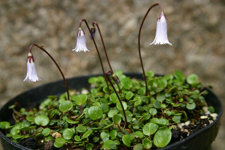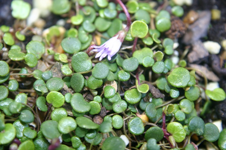 The smallest little thing with the most delightful little flowers, produced rather sparingly in spring. I got my plant from Blackthorn Nursery,