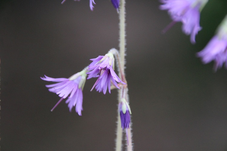 It always seems quite coarse to me, although it is a grossly unfair thing to say about such a tiny plant. I bought it from Triffids Nursery, their label says: "Fringed purple flowers April-May. Shade loving alpine. Needs well dained soil in light shade 6in." Dan Hinkley said in the Heronswood catalogue (2000): "An undemanding species that, though recommended as an ideal bog plant, thrives in our relatively dry woodland, where in early spring nodding and fringed violet flowers are produced on 8in stems above mounds of rounded, evergreen foliage. Will ultimately spread by stolons to produce sizable colonies." |