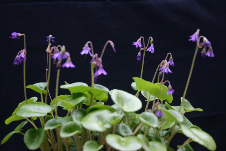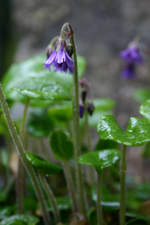 Pale purple fringed flowers from tiny mats of rounded leaves in early spring. I bought a plant from Tale Valley Nursery and their label says: "Probably the easiest and most robust of the genus. Frilled bluish/purple flowers over mid green foliage with haired undersides and flower stems. For a moist but well drained soil in a cool position." Writing in the newsletter of the Shade and Woodand Plants Group of the Hardy Plant Society (May 2017), Joe Sime says: "I have tried to grow two or three of the relatively small species of soldanella. They all look pretty similar with a basal rosette of roundish leaves and a central stalk with up to six purple/blue/white flowers. They have lasted for a few years and then are generally out-competed by their neighbours. One of the problems of a big garden is that such little treasures do not get the attention they need to flourish. However, S. villosa, the largest of the genus, is much easier to keep alive and has held its own against encroaching epimediums for 17 years now. It has relatively large leaves up to about 2 ins across and a stem up to 12 ins tall with two to four purplish-blue flowers. For me it does not always flower, but when it does it is worth the wait. It comes from moist woods in the foothills of the Pyrenees and I have it in reliably moist soil in quite dense shade. Perhaps it would flower more regularly with a little more light, and writing this has made me decide to spread it around a little and give it a chance in a better site. " |