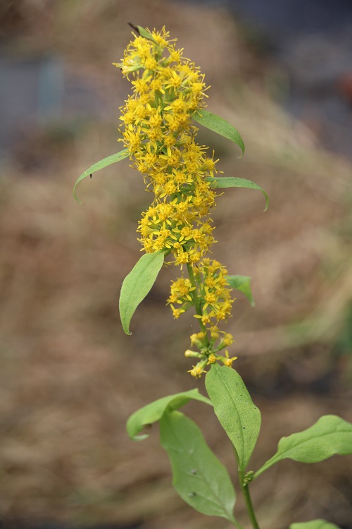 A Golden Rod that provides rich variegated foliage through the summer and unfortunate ragged yellow heads