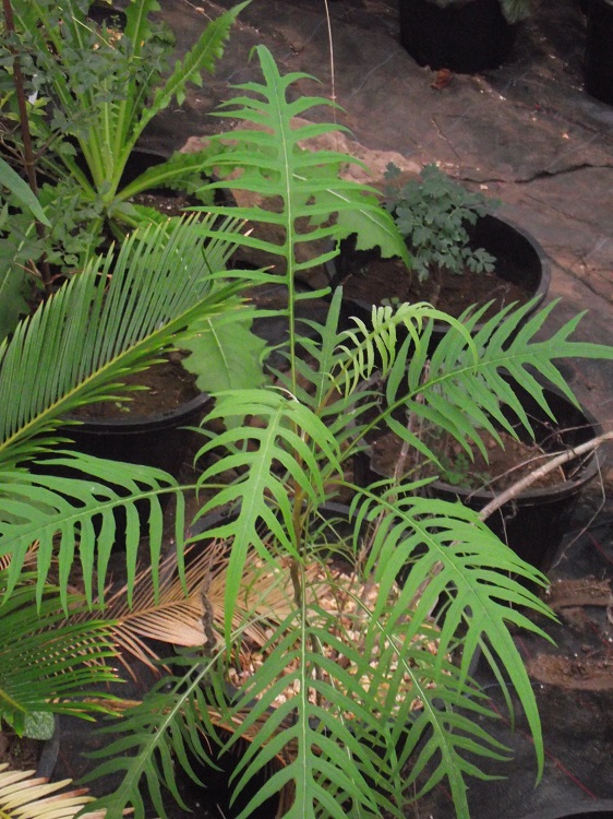 Strange Wonderful Things say: "The unusual "Tree Sonchus" - Sonchus canariensis - is found nowhere else except the Canary Islands off the coast of North Africa. This wacky, palm tree shaped Daisy relative grows 8 feet tall, looking like a plant from a Dr. Seuss book! Its fern-like foliage and tall stature makes it a bold focal point in the garden. The Tree Sonchus is rare in cultivation, and fresh seeds are rarely seen for sale. Sonchus canariensis is a woody, perennial species with an upright growth habit. I prefer to grow it with a single, tall, tree-like stem, although you may encourage multiple stems by pruning the top of the main stem. Each spring and summer, the plant forms huge heads of dandelion-like flowers at the tops of the branches. Each branch can have over 100 of these lemon-yellow blooms, which are a favorite of honey bees. This is a non-invasive species. The leaves are reportedly edible, and tasty when cooked. The plant comes from a Mediterranean climate, with mild temperatures all year, and nights that are cool. I have no information on how much heat it can take, but it's possible that it will decline if temperatures consistently rise above the mid-80s (30°C), especially if nights are warm. The plant tends to go dormant during the warm summer months, during which time it may be moved indoors to a cool spot. Protect it from temperatures below 30° F (-1°C). It prefers full sun during the growing season. It likes well-draining soil and regular watering when young. Mature plants are quite drought tolerant if given ample root space." |