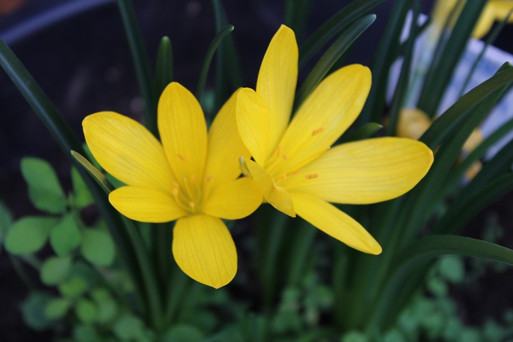in the south side of the house, beside the back doorstep but flowering is sparse and vulnerable. Writing in 'The Plantsman' in 1983, Brian Mathew says: "Sternbergia lutea is by far the best-known species in gardens where it is much used at the foot of warm sunny walls. It makes an ideal companion for other plants whose bulbs or rhizomes require a similar hot summer baking as Nerine bowdenii and Iris unguicularis, and it thrives on chalk or limestone soils: alkalinity is however by no means essential to its well being for it does extremely well in gardens on the poor sandy soils of Surrey. The amount of leaf development at flowering time is one of the most variable features of S. luteaand largely depends upon the moisture availability in the late summer or early autumn when growth begins. In dry seasons there may be a small amount of leaf visible which is preferable from the point of view of general appearance, but it is more normal for there to be considerable leaf development. Some experiments into this behaviour by A.Amico (1947) showed that both the flowering and leafing conditions of the plant are controlled by temperature and humidity. Sternbergia lutea has long been known in gardens, for example to Carolus Clusius (1601) and John Gerard (1597) who published illustrations of it, as Narcissus autumnalis major ot the "Great Winter Daffodil". Cultivation over a period of nearly 400 years has probably led to the obscuring of its true wild origins, for nowadays it is most frequently found in or near old gardens." John Gerard says: "The Autumn Daffodil bringeth forth long smooth glittering leaves, of a deep greene colour: among which riseth up a short stalke, bearing at the top one flower and no more, resembling the flowers of mead Saffron, or common Saffron, consisting of sixe leaves, of a bright shining yellow colour; in the middle whereof stand sixe threads or chives, and also a pestell or clapper yellow likewise. The root is thicke and grosse, like unto the precedent." |