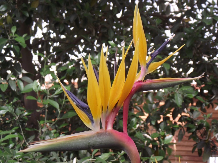 none of mine came up!) The pictures below show the plant flowering at Wisley. Even at my most optimistic, I will not be seeing flowers on mine for the best part of a decade. In fact the winter of 2009-10 killed it. Plantzafrica says: "Yellow-flowering strelitzias have been known for a number of years, plants have cropped up in France, California, Australia, Japan and in South Africa at a few locations in Eastern Cape and at Kirstenbosch and the Karoo Desert National Botanical Garden, but always as isolated specimens. Left to their own devices, the seeds from these yellow forms will not breed true as they will most likely have been pollinated by an orange plant. To get yellow progeny, two yellow plants must be crossed. At Kirstenbosch in the 1970s, there were seven yellow plants in the nursery. John Winter, who was curator during this period, began a project to increase the stock. It took nearly twenty years of careful selection and hand-pollination, and in 1994 the original stock had been built up enough to enable us to introduce the yellow strelitzia to horticulture. It was released and traded under the name 'Kirstenbosch Gold' until 1996 when the NBI was granted permission to re-name it in honour of Nelson Mandela. In South Africa and other sunny countries, strelitzias will also do well in semi-shade, but in less sunny regions, they need as much sun as they can get if they are to flower well. Once established, they can survive with very little water, and they are tolerant of wind and coastal conditions. But 'Mandela's Gold' is sensitive to cold and needs a sheltered position against a north- or west-facing wall in areas that experience frost, and is not suitable for permanent outdoor cultivation in regions that experience a winter low of -7 to -1 ºC / 30 to 40 ºF (zone 9) or lower." |
