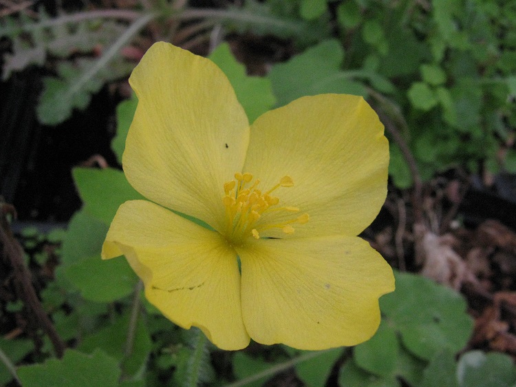 around hoping that it will find a suitable location and grow. A rhizomatous perennial from eastern China, it has been short lived here but fortunately seedlings continue to come up unexpectedly. It will possibly become a nuisance if it takes to life under the trees but it can't be more invasive than Meconopsis cambrica and I am still pleased to have that. Chiltern Seeds said in their 1999 catalogue: S.lasiocarpum (= woolly-fruited: disppointingly the seed capsule is only slightly hairy). Human-Blood-Wort. Worth growing for its gruesome name alone! This is earned by the reddish sap exuded by the rot and stems of this plant; however, we suggest you stick to ketchup for cosmetic purposes! This is a delightful plant for a shady spot on the rockery, bearing clusters of very pretty yellow flowers. It starts flowering in May and goes right into October when summer becomes just a memory." |