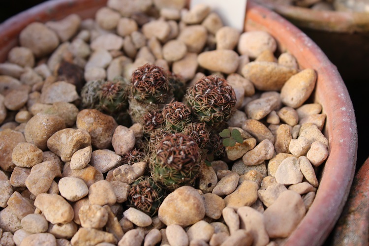 A small cactus that I bought when a collection was auctioned. It came with something else growing in the pot as well, probably a Rebutia. Naturally the impostor had large orange/red flowers,