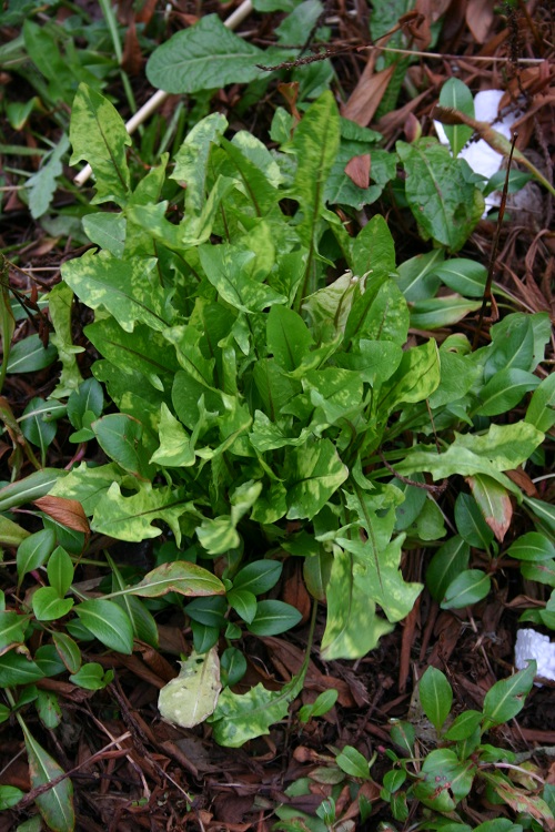 An awful weedy weed, but wonderful in the spring. This one turned up as a seedling, with odd blotches of yellow all over it like some curious illness.