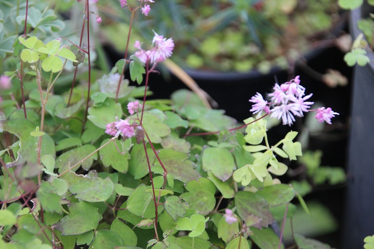Very pretty thing that seems to flower for months through the summer. I bought it from Aberconwy Nursery and their label says: "Enchanting Japanese woodlander with feathery lilac flowers from June - August in 10 - 15cm tufts. For humus rich soil in sun or part shade, where it runs gently. Good free flowering form." Plant Delights Nursery say: "Charming isn't good enough to describe this delightful miniature woodland meadow rue, Thalictrum kiusianum. The tiny deer-resistant clumps of maidenhair fern-like foliage form little rosettes to 6" tall. In early summer, the clumps of Thalictrum kiusianum are topped with airy, light purple flowers that rest just above the foliage. Here is a slowly-spreading gem for the woodland garden...you will absolutely LOVE IT!" |
