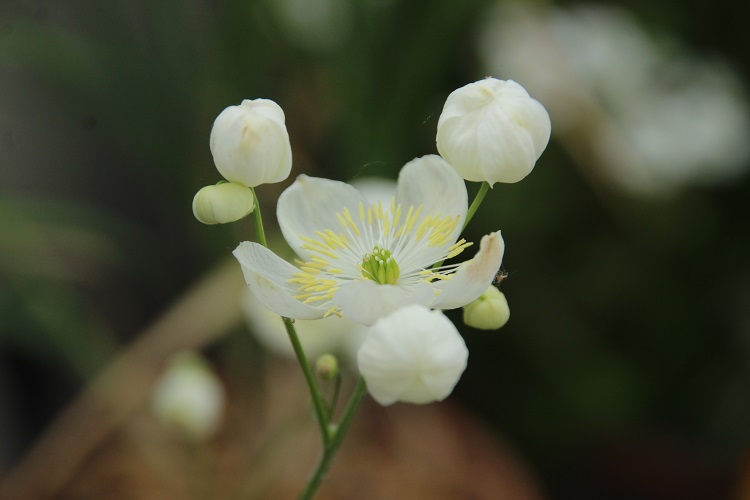 A short growing species from the Pyrennees. Only occasionally seen in cultivation but it is a beautiful and easy species. It was given an Award of Merit when shown by Kew at the Chelsea Flower Show. In the write-up in the Bulletin of the Alpine Garden Society in 1996, Tony Hall says: "Having seen some wretched, depauperate specimens of this well-known but variable thalictrum for sale at RHS shows, I was not unduly surprised by the reception afforded our fine form at Chelsea in 1996. A plant of rocky, open areas in eastern Spain and the Pyrenees, this species sports (as its name indicates) a tuberous rootstock. Its delicate, glaucous foliage is mostly basal and tri-pinnate, attractively grey-green, with the leaflets toothed or lobed. Some of our stocks flower at only 16cm in height, others at twice that and (like the award plant) it can reach 45cm in full flight. Kew's collection was made by the brother ansd sister team of Stephanie and James Joseph (J & J 319) on a field-trip to the Spanish Pyrenees in 1985. The flowers are large, ivory-white saucers, 3cm to over 4cm across, with green carpels surrounded by a conspicuous boss of pale creamy-yellow anthers; the five petals are rounded and up to 15mm wide. Although the slender erect stems have few side branches, main stalks will carry up to 15 flowers and the petals are relatively persistent for a Thalictrum, so this can be a very showy species. But miserable, anorexic-looking waifs with small, dirty-white flowers have been doing the rounds. My advice is: look before you buy. Thalictrum tuberosum is hardy and not too fussy. We have grown is successfullyn in a hot, dry raised bed outside, as well as in pots where it enjoiys a gritty but reasonably moisture-retentive compost and light summer shading. It is never bone-dry (even when dormant) and is certainly a thirsty blighter whilst in leaf. Worthwhile clones may be divided, carefully, in early autumn but fresh seed, sown and placed outside, will produce decent youngsters within 18 to 24 months. At Kew, seed raised stocks, although variable in height, retain the beautiful flower-characteristics of the original collection." |