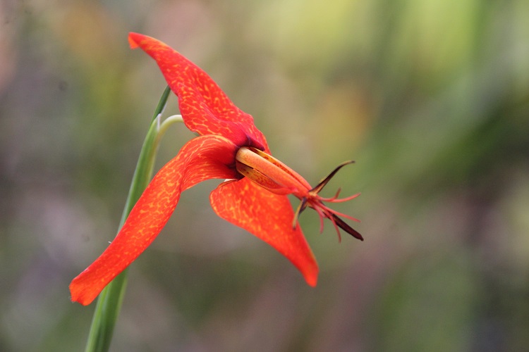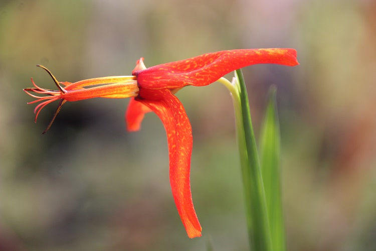 completely terminal. From others experience I would guess that it needs a hot summer and plenty of moisture and food to give a decent display but it hasn't prospered here. Crug Farm Plants say: "With the growing habit similar to the familiar tiger lily, arising from large tear-shaped resting bulbs with fleshy seasonal roots, forming neat fans of upright pleated strap-shaped leaves to 30cm long. But bearing dazzling red orange-yellow flecked flowers that are borne in succession on the terminal spikes just above the foliage for months from mid summer into autumn. Originating from one of our collections found growing in abundance in a Mexican forest on the moist mountains of Oaxaca in 2004 at a lofty 2800m. Easily grown in a moisture retentive but freely drained soil in either sun or shade. Mulch to protect from penetrating frosts in cold areas. (Syn. Rigidella)" |