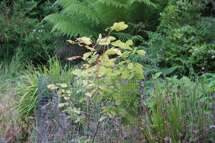 It is unusually vigorous for a golden-leaved tree, reaching 15m, dbh 55 cm at the Sir Harold Hillier Gardens, Hampshire by 2017 (Tree Register 2018). "