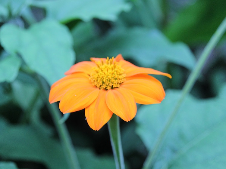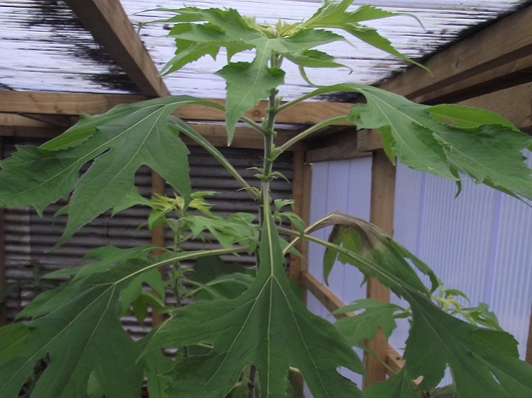 around the world and become a weed in some places. I was given a young plant and I am not expecting it to be particularly hardy. It has been planted in the Agave house where it will at least be warm in summer. It grew rapidly but didn't make it through a mild winter. Pictures from warmer climates show a giant plant, growing to about 5m, towering over people. Useful Tropical Plants say: "Tithonia diversifolia is a robust plant that can vary significantly in habit. Sometimes an unbranched or sparsely-branched annual, it can also be a short-lived perennial, or the plant can become shrub-like with more or less woody stems. It can grow from 1 - 5 metres tall. The plant is harvested from the wild for local use as a medicine and fuel. It is sometimes grown as a companion plant, helping to improve the soil and increasing the yields of a range of crops. It is also often grown as an ornamental." |