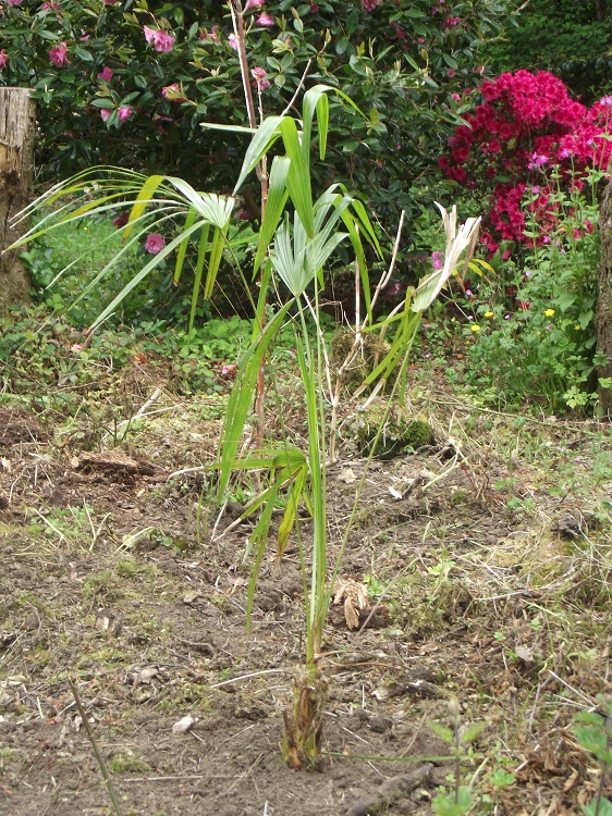 A Trachycarpus that has been knocking around in cultivation for a while. I got it as a seedling a very long time ago and was amazed to find it still alive, if struggling, under a mass of brambles.