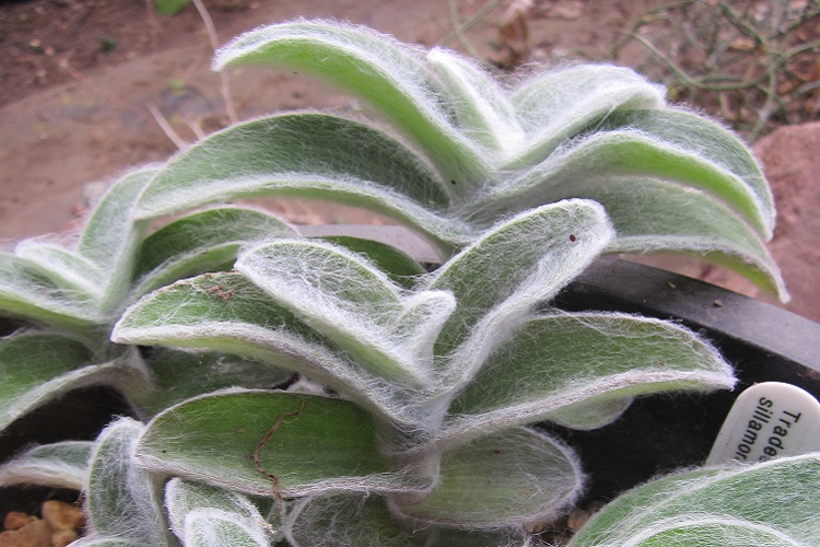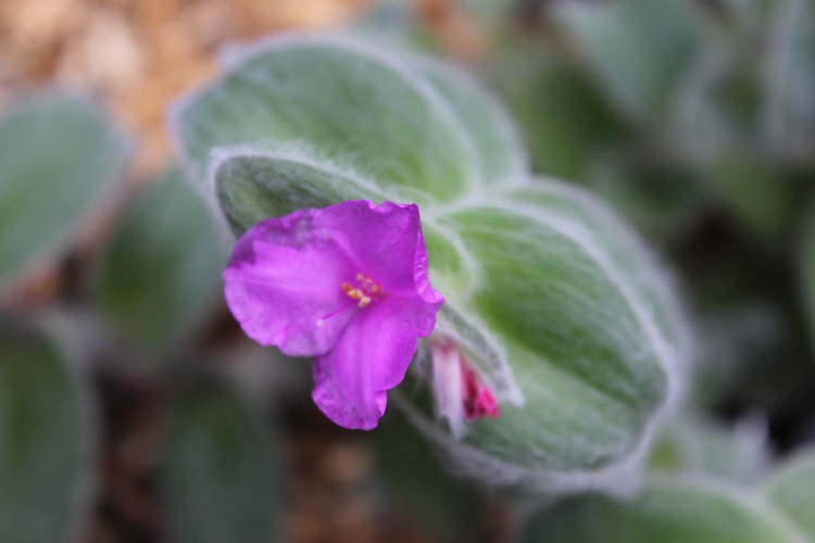 that saw me buy another this spring and plant it in the Agave house. It comes from the drier states of northern Mexico, so it is well suited to the company of Agave and I am hoping it will be moderately hardy. The North Carolina Extension Gardener Plant Toolbox says: "Cobweb spiderwort is a low-growing, perennial groundcover plant that is native to dry regions in northeastern Mexico and is a member of the spiderwort family (Commelinaceae). It is densely branched, has prostrate and ascending stems, and grows 6 to 12 inches tall and 12 to 18 inches wide. The specific epithet, sillamontana, is a Latinization of "Cerro de la Silla." This references the hill or mount near Monterrey, Nuevo Leon, where this plant is native." |