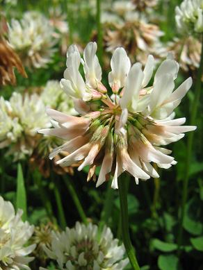 which might be interesting to introduce, but I am sure they don't perform as well as this! The Wildlife Trusts say: "White clover is a very common plant of all kinds of grassy areas in the UK, from lawns to pastures, roadsides to meadows, as both a wild and sown flower. The famous trefoil leaves are collected by Wood Mice and are one of the foodplants of the common blue butterfly; the flowers appear from May to October and are sought after by all kinds of bumblebees." The RHS say: "A common sight in wild meadows, this fast-growing clover has rich green leaflets, often with a creamy white band at their base. For many months from spring to autumn, clusters of near-white flowers appear in profusion and these are very attractive to bees and other pollinating insects. This is one to avoid if you want a pristine lawn (it can become invasive), but it is perfect if you want to create low-growing ground cover in record time. White clover can also be grown as a green manure crop and dug into the soil before the plants start to flower." |