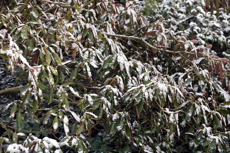 and I once called it pug-ugly which is true, but does nothing to diminish its charm. In winter it only takes a moment of low sun to fill it with a golden glow. It is a good plant that survives offensive weather without complaint. It is easy to overlook its simple charms, and it hasn't a single feature that makes it stand out. I like it, and it is really easy to be unkind about it. In 2002 I wrote: "Trochodendron aralioides started 20 years ago as a two foot mound of dull leaves, but after two decades it has now become a towering four foot mound of dull leaves. The only highlight is the new growth in spring, bursting from the pink tinged buds, a little thrill of excitement, much like getting the washing in just before it rains, or seeing a brown cow in a field of Friesians." |