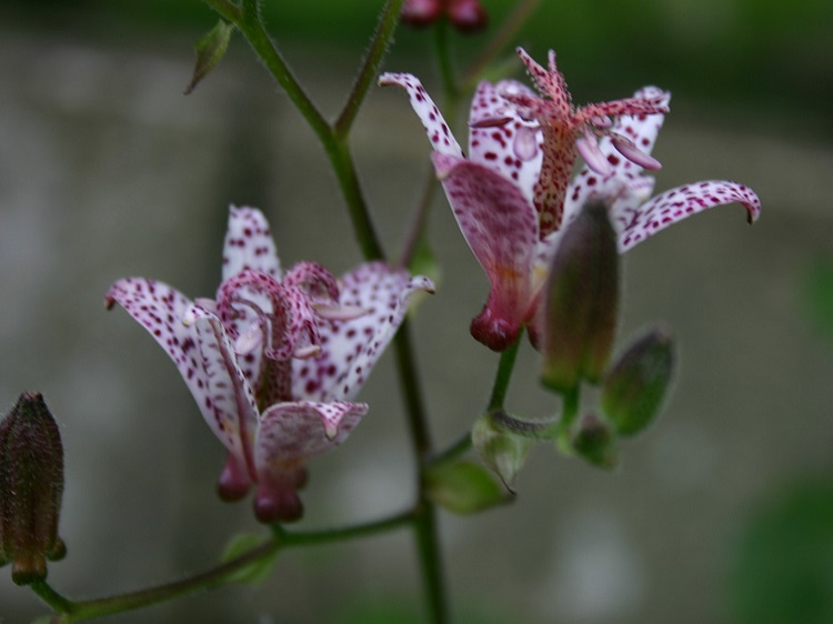Tricyrtis often favour. I got it from Barracott Plants but there are several very similar plants to be found in gardens.