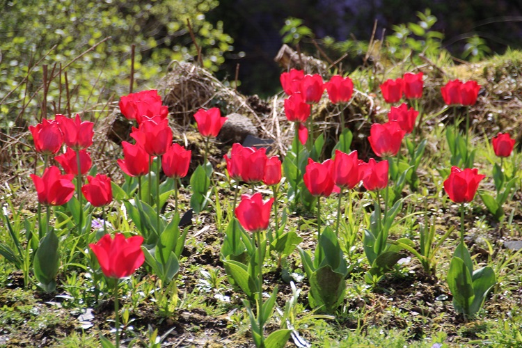 A small growing red hybrid that I bought from a garden centre. The packaging promised that it was a good perennial (in tulip terms). It flowered well in the first year,
