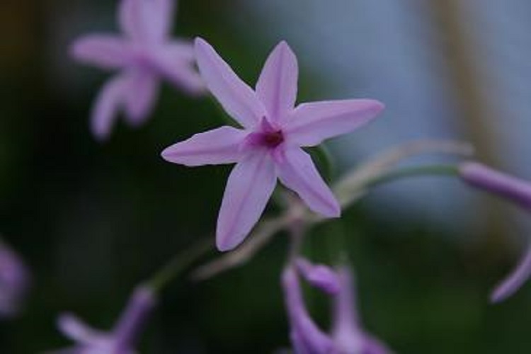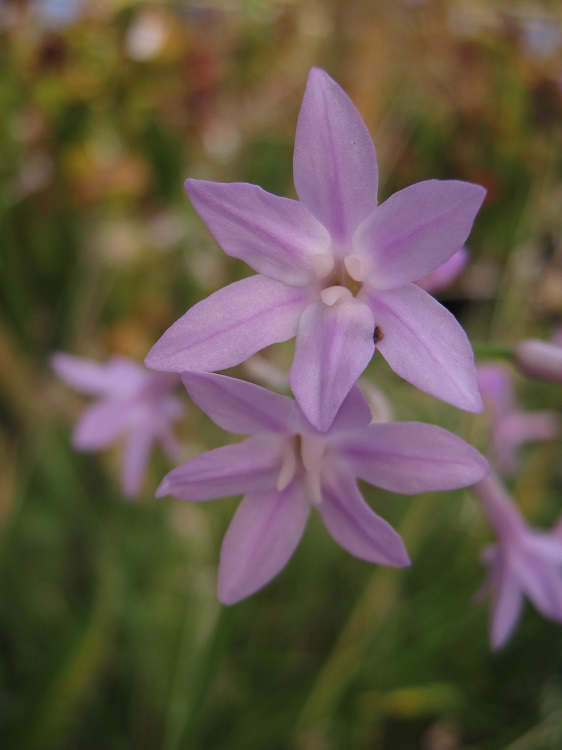 Grown from Alpine Garden Society seed in spring 2005 and just reaching flowering age. Other plants I have seen have a short, creamy yellow corona so this may not be true to name. Vosa says: "This variety of T. violacea Harv. has been found, so far, only near the sea-shore hence the epithet maritima. It differs fron the type species by its broader, shiny, dark green leaves without a prominent central vein. It has somewhat flat flowers with very small coronal lobes. All the collections are very similar to one another and self-fertile." Plantzafrica says: "Tulbaghia maritima is a coastal plant species endemic to the Eastern Cape Province of South Africa. It is distributed from Nature’s Valley to the mouth of the Gamtoos River, the area of distribution falls within the Humansdorp and Willowmore districts. This species grows close to the seashore, often in coastal forest or at river mouths, where it thrives in sandy soils amongst rocks. Tulbaghia maritima favours steep gorge-like terrain, with dense vegetation, the conditions of which alternate between freshwater input from rivers and saline water from the sea. This marine-influenced habitat’s environmental conditions are unique and challenging for seed germination and plant growth. Tulbaghia maritima is assessed as Vulnerable (VU) on the Red List of South African Plants. This can be attributed to its small natural range and the ongoing degradation and loss of its habitat to make room for coastal and tourism infrastructure development. This conservation status highlights the ecological sensitivity of the species and the importance of protecting its remaining coastal habitats. Tulbaghia maritima was formally described in 2011 by C.G. Vosa. It was previously considered to be a variety of Tulbaghia violacea but was elevated to species status following extensive fieldwork and taxonomic research. This work revealed clear morphological distinctions between the two taxa, as well as the unique and specific habitat requirements of Tulbaghia maritima. A 2016 phylogenetic study by Stafford et al upholds this status, showing that T. maritima forms a strongly supported clade of its own, beside one containing T. violacea and T. cominsii." |