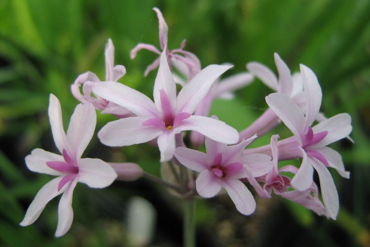 that have turned out to be quite variable as they have come into flower. There has been some loose behaviour in the perfumed bower of Tulbaghia ! T. simmleri has distinctive broad leaves. |