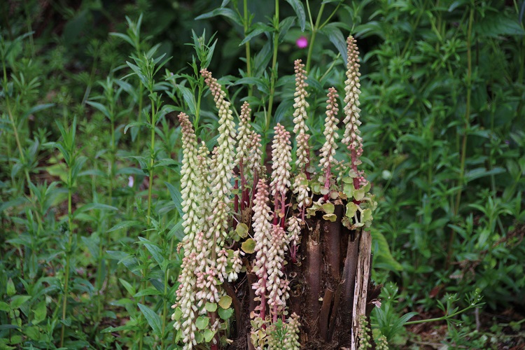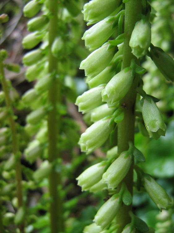 A common native plant in the south and west that occupies the hedgerows in summer when the bluebells have died down. The greenish flowers have a certain style that makes up for any weedy tendencies. It grows in the garden in the hedges and on bare stony surfaces. I also find it cropping up in tree fern trunks and on one occasion I found it growing on a folded compost bag that I had left outside by mistake. The BSBI say: "A perennial herb of coastal cliffs, walls, roofs, in rock crevices, quarry faces, sandy cliffs and on stony hedgebanks, mainly on damp, shaded acidic substrates though occasionally found on limestone. In Cornwall it has even been seen growing as an epiphyte on the boughs of large trees." Wild Food UK say: "A lovely addition to any salad with its succulent, delicate flavour. Some say a bit like peas although we think it is pleasant but usually quite neutral although from different rocks and walls and times of year they can sometimes be very bitter." |